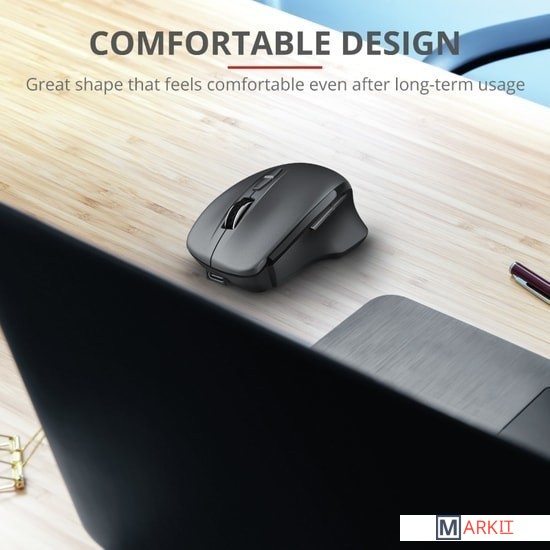Эргономичная мышь со встроенным перезаряжаемым аккумулятором. Встроенный перезаряжаемый аккумулятор (до 40 дней работы).