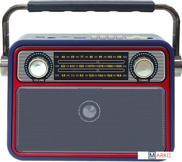 Радиоприемник MIRU SR-1022 синего цвета имеет ретро дизайн, простой функционал и обеспечивает приём сигналов в диапазоне FM, AM и SW. Аналоговый способ настройки частоты предполагает более точное и быстрое улавливание нужного канала. Для улучшения качества сигнала у радиоприемника имеется поворотная телескопическая антенна. Радиоприемник SR-1022 может работать как от сети 220В, так и аккумулятора. Устройство оснащено удобной, складывающейся ручкой, благодаря чему его будет легко переносить. Органы регулировки громкость и смена диапазонов расположены на передней панели приемника. Также предусмотрено проигрывание с USB и microSD накопителей. Данный радиоприемник отлично подойдет для туристов, дачников и просто любителей отдыха на природе.