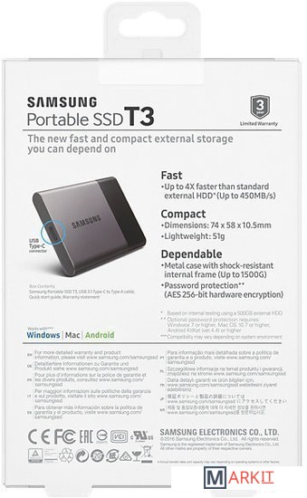 Markit » Внешние накопители (HDD и SSD) » Внешний накопитель Samsung Portable SSD T3 250GB [MU-PT250B]
