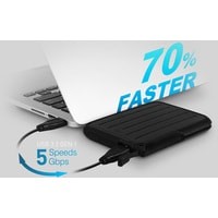 Armor A66 - это настоящий «внедорожник» среди портативных накопителей, который легко справится с ударами, падениями, попаданием под ливень в отпуске и бытовой пылью в офисе. Корпус устройства защищён мягким резиновым бампером, который помогает поглотить силу удара при случайном падении и защищён от попадания брызг и капель воды со стандартом водонепроницаемости IPX4, что помогает сохранить накопитель в целости и сохранности.